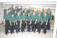 Here are the photos I took of the whole crew dressed up in green for the group photo. Unfortunately I forgot I had the camera set on low res for the first few. The last three photos are the big ones (click on the 'Large Image' link on the photo page to get the high res version).